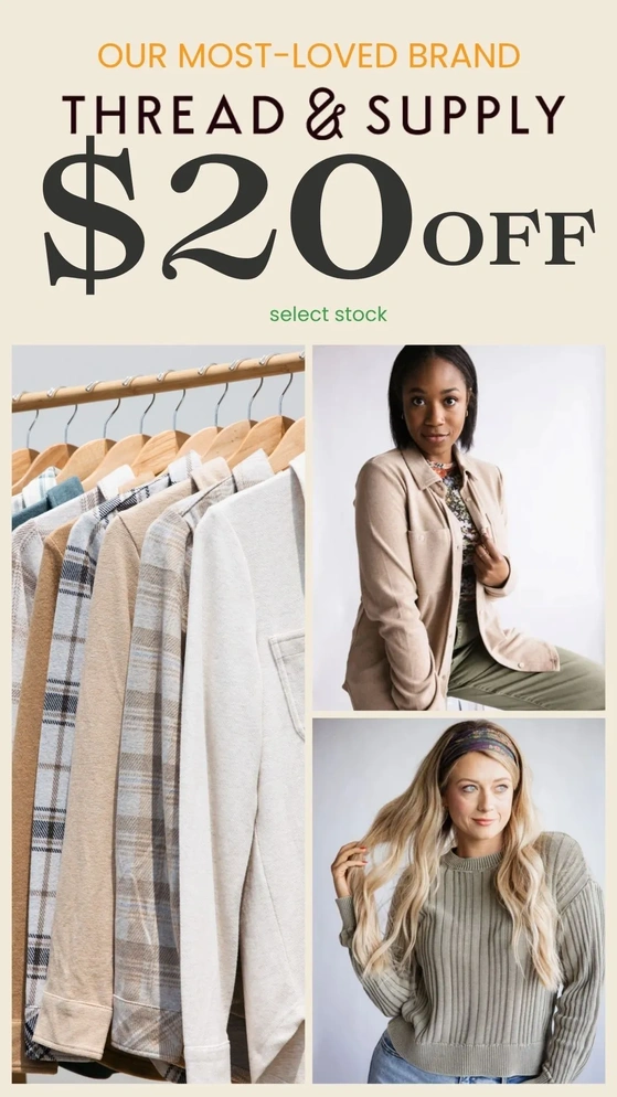 $20 OFF our most loved brand, Thread & Supply!