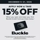 Available in store and on buckle.com. While supplies last. Specials cannot be combined.