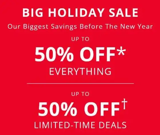 Big Holiday Sale! Shop in store and get up to 50% off everything & up to 50% off limited-time deals.